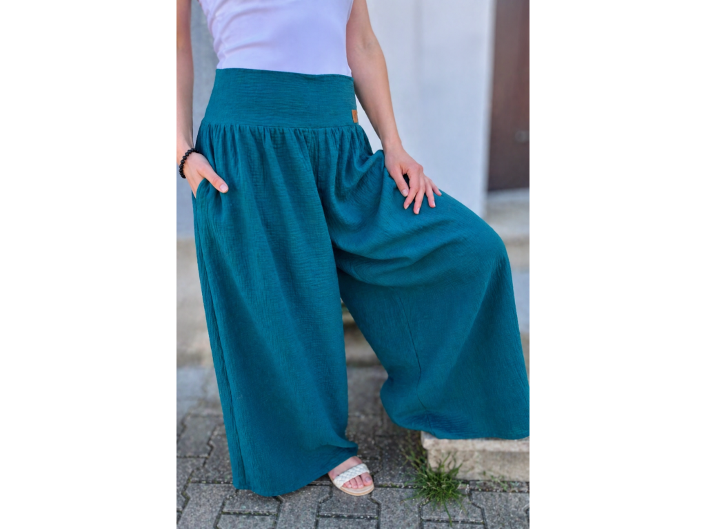 AIRA PALAZZO dámské mušelínové kalhoty SMARAGD