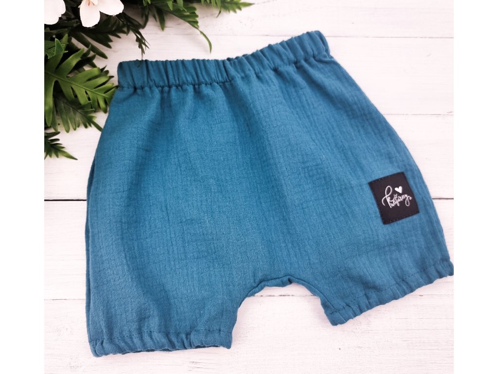 Pohodlný střih, široké nohavice, skvělé i pro miminka s plenkou. Kraťasy jsou ušity z mušelínu. Materiál tak dokonalý, že si jej zamilují všichni bez rozdílu. Ptáte se, čím je mušelín tak výjimečný? Především je to jeho prodyšnost. Otevřená vazba tkaní a lehká struktura umožňuje mušelínu „dýchat“ a zajišťuje dostatečnou cirkulaci vzduchu, čímž snižuje riziko přehřátí.