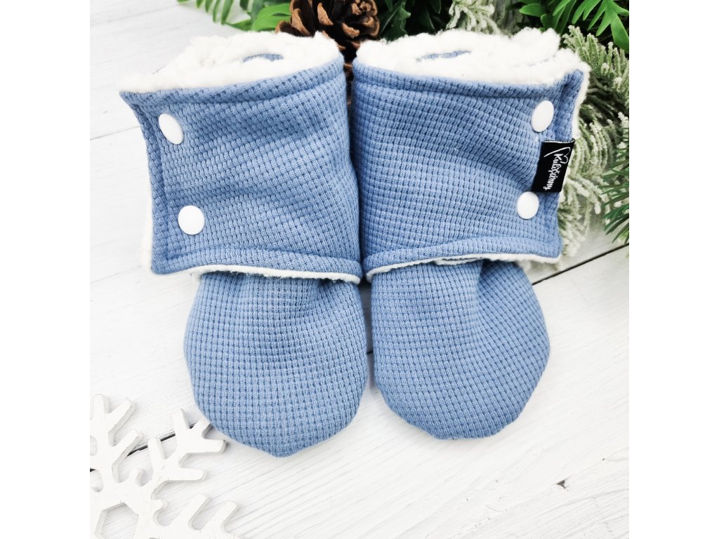 Modré waflové capáčky s beránkem na doma, do kočárku, šátku či nosítka