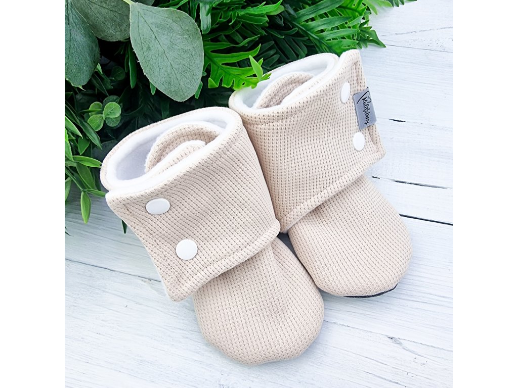 Propracovaný střih zajistí Vašemu miminku pohodlí a teploučko. Capáčky šijeme dostatečně široké pro co největší pohodlí Vašeho zlatíčka, zároveň je okolo kotníčku gumička, aby se botička nevyzula. Capáčky mají praktické zapínání na 2 patentky. Celý capáček je podšitý měkoučkým beránkem, který zajistí dostatečnou tepelnou pohodu Vašemu miminku.