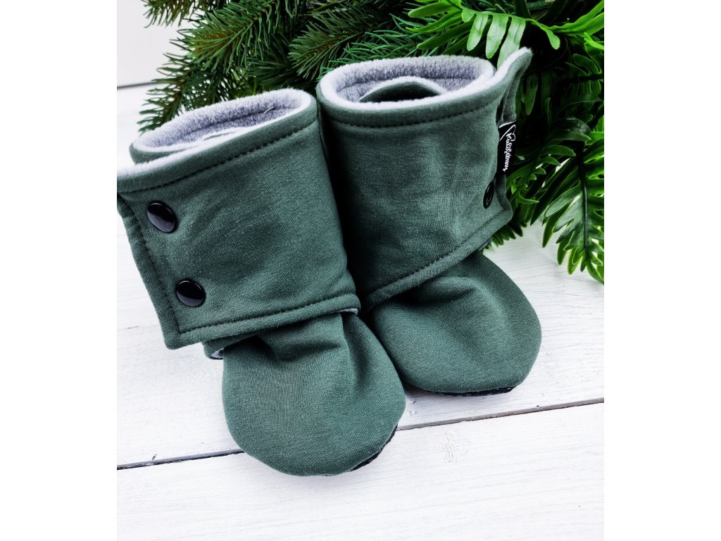 Hnědozelené capáčky s šedým fleesem na doma, do kočárku, šátku či nosítka