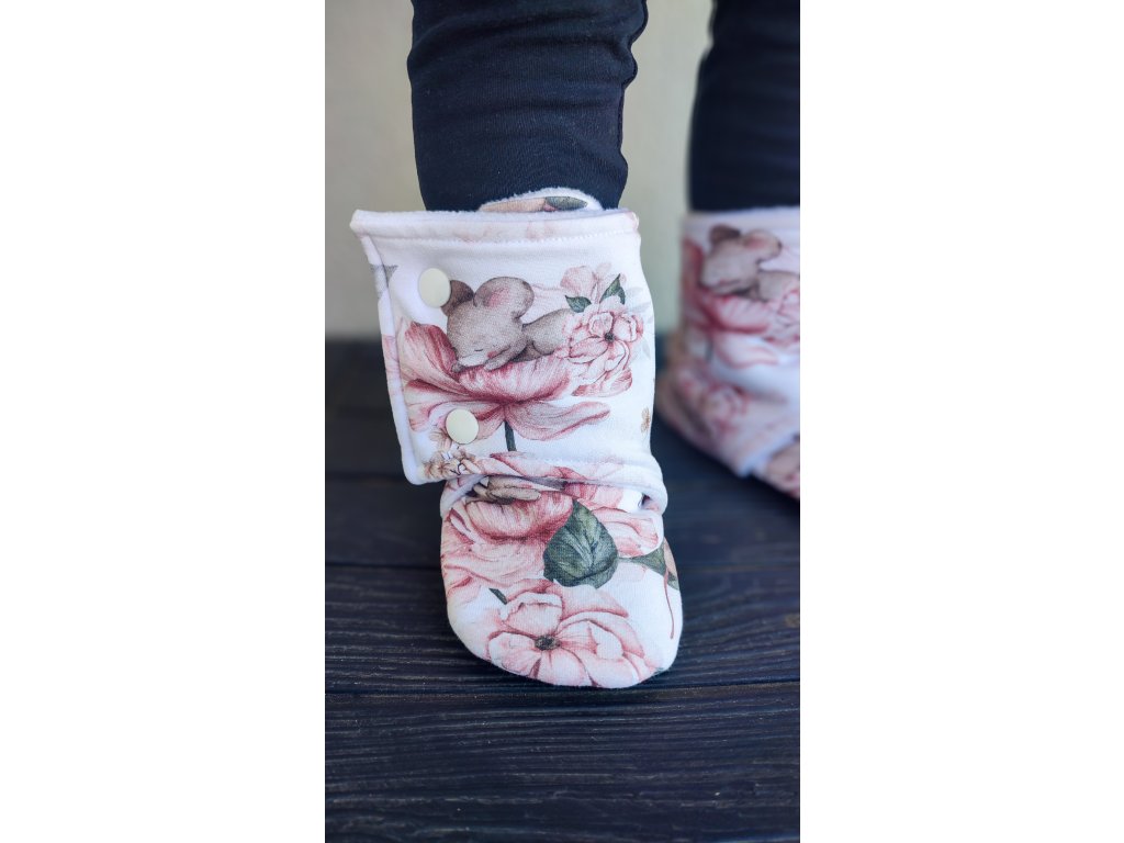 Propracovaný střih zajistí Vašemu miminku pohodlí a teploučko. Capáčky šijeme dostatečně široké pro co největší pohodlí Vašeho zlatíčka, zároveň je okolo kotníčku gumička, aby se botička nevyzula. Capáčky mají praktické zapínání na 2 patentky. Celý capáček je podšitý měkoučkým fleesem, který zajistí dostatečnou tepelnou pohodu Vašemu miminku. Podrážka je z protiskluzného materiálu, takže krůčky Vašeho kulíška budou bezpečnější.