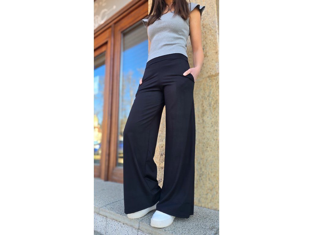 Černé dámské široké kalhoty s vysokým pasem