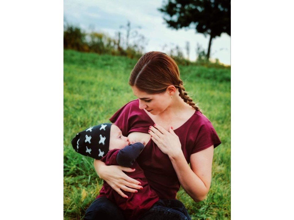 Kojicí tričko vínové s diskrétními skrytými zipy