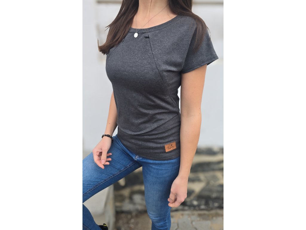 Černé kojící tričko s diskrétními skrytými zipy