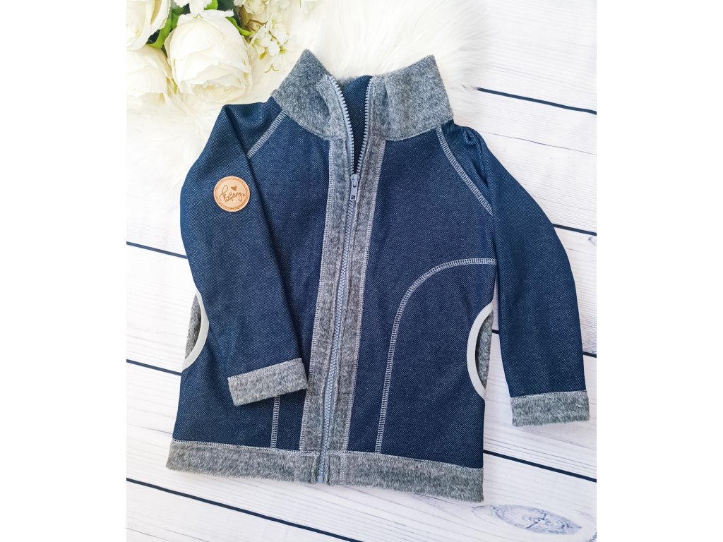Krásná zateplená mikinka se stojáčkem s džínovým vzhledem