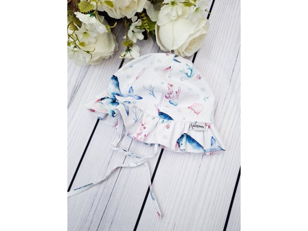 Klobouk ŘASENÝ mušelín OCEÁN