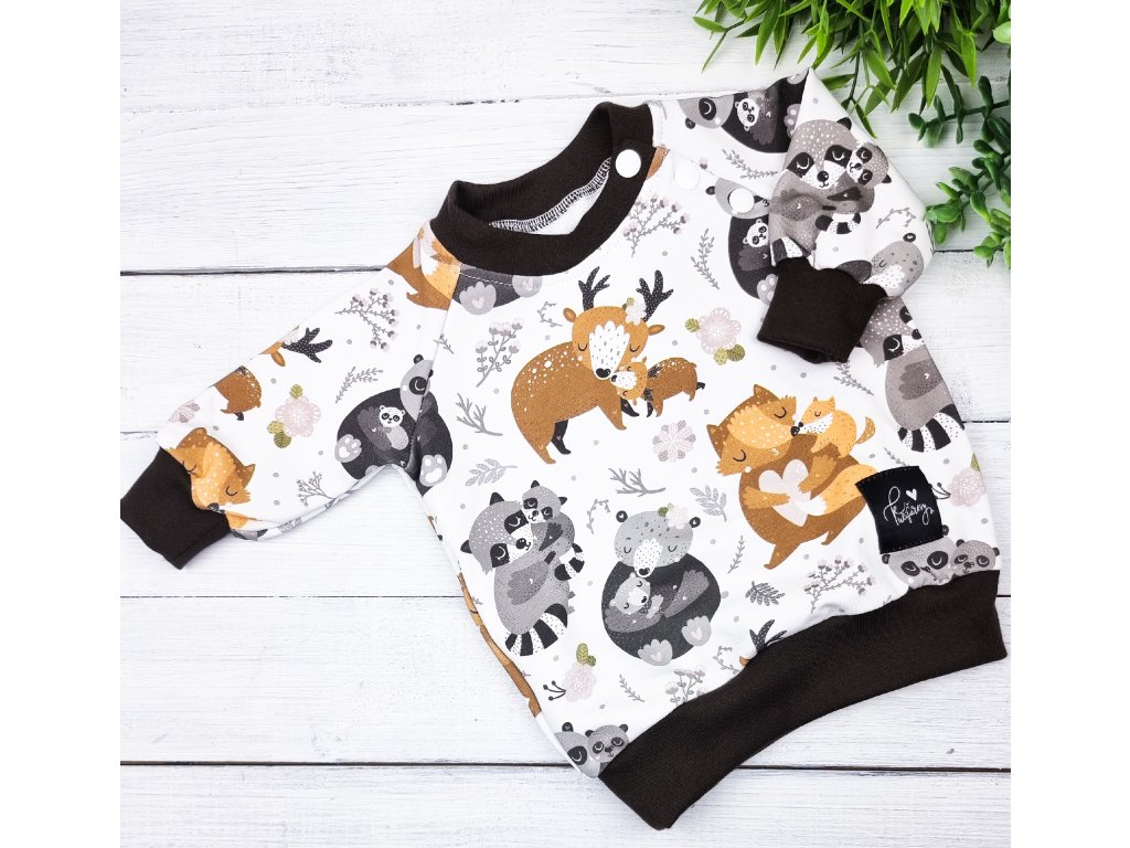 minimalistická mikina přes hlavu s milými zvířátky s hnědými detaily