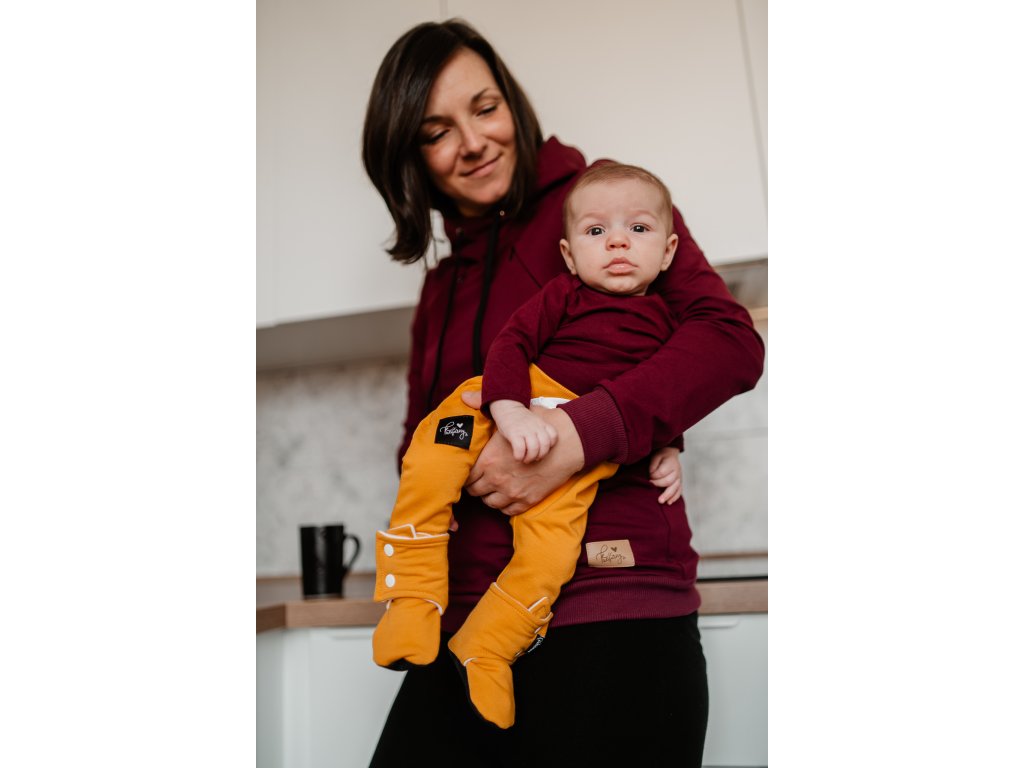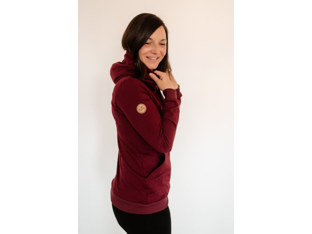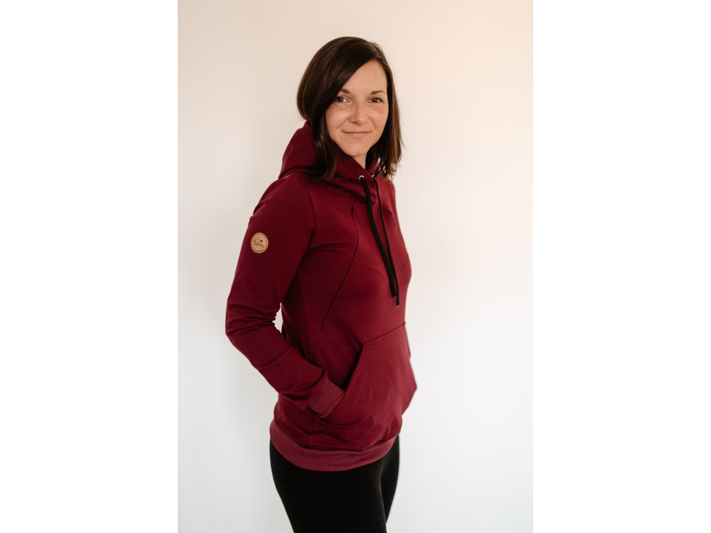 Vínová mikina se skrytými zipy pro pohodlné kojení