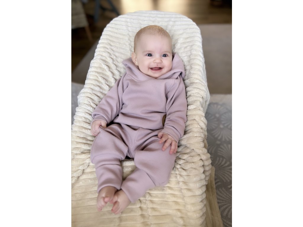 Stylová dětská mikina s kapucí přes hlavu, ušitá z wafloviny. Mikina má kapuci. Mikinu využijete během celého roku, proto je mikina důležitou součástí šatníku každého kulíška. Doladit ji můžete našimi tepláčky.