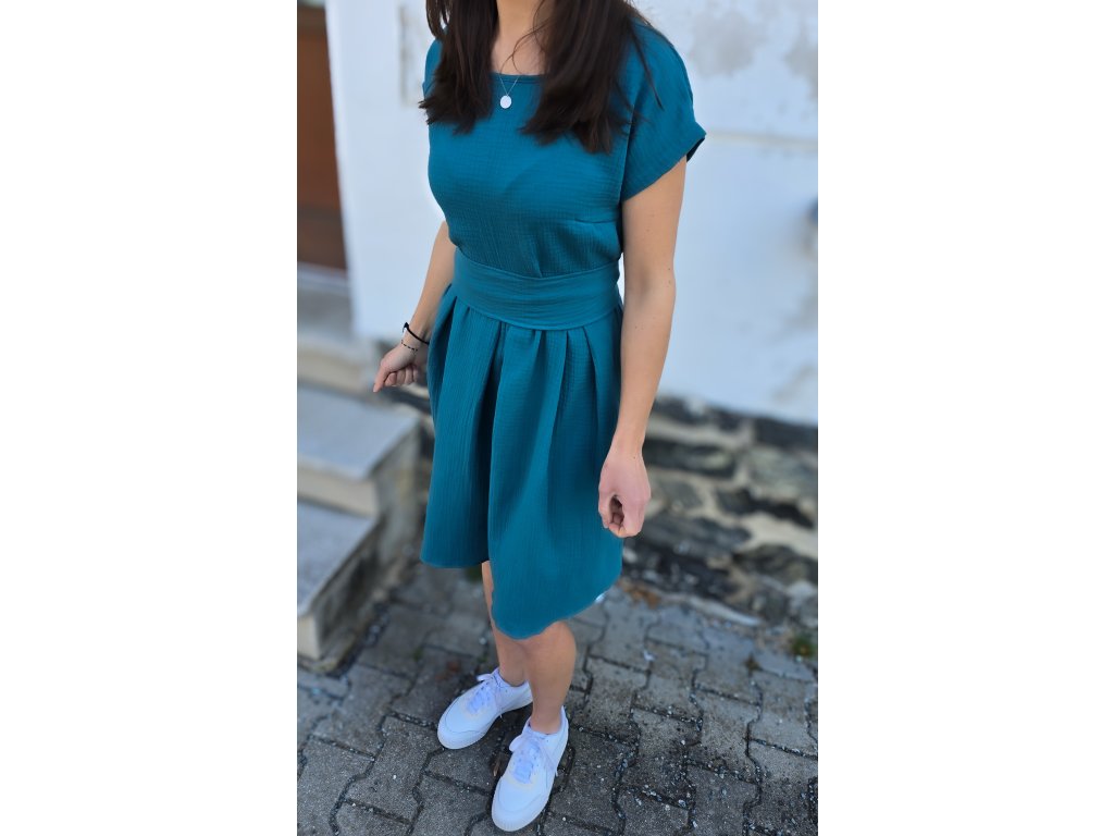 Doplňující stuhou, kterou můžete a nemusíte použít, následně šaty stáhnete a vytvoříte právě onen wau efekt - krásně zvýrazníte pas.