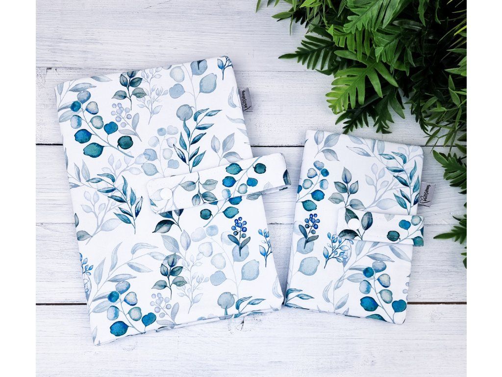 Designový plenkovník a obal na očkovací průkaz s eukalyptovými lístky