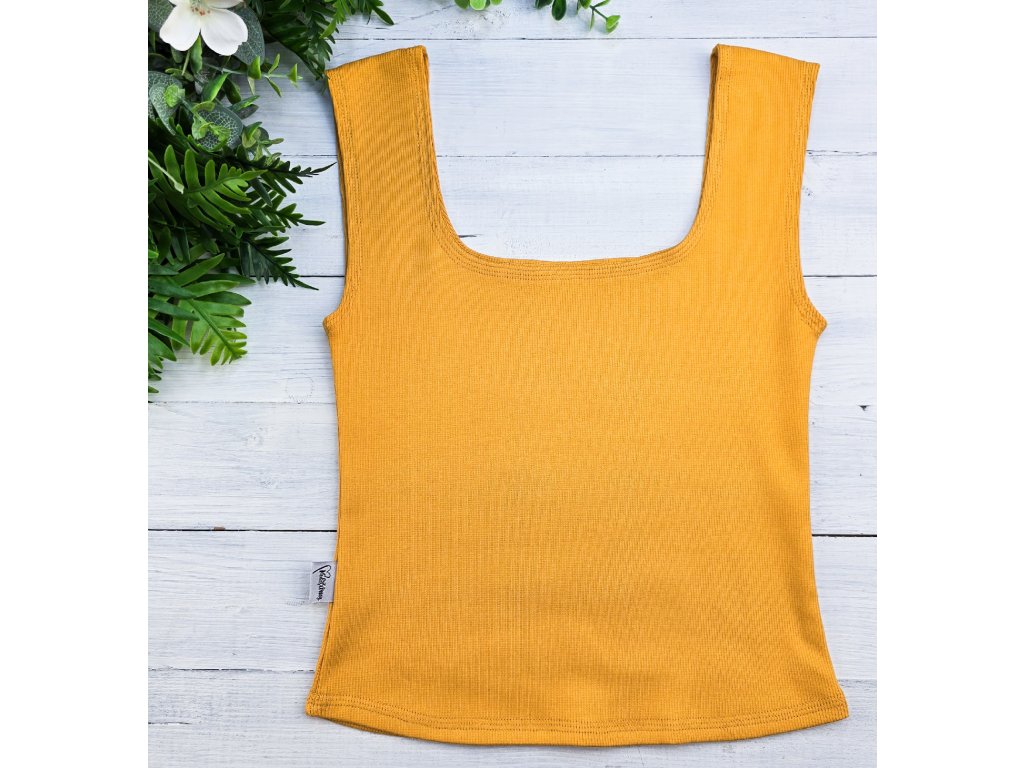 RIVA - top s vykrojenými zády MUSTARD