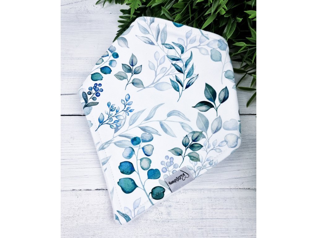 praktický teplákový slintáček pro miminko s motivem eukalyptových lístků