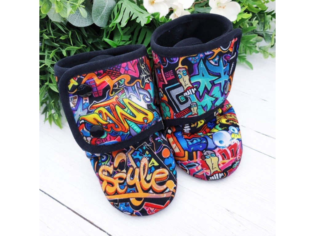 Propracovaný střih zajistí Vašemu miminku pohodlí a teploučko. Capáčky šijeme dostatečně široké pro co největší pohodlí Vašeho zlatíčka, zároveň je okolo kotníčku gumička, aby se botička nevyzula. Capáčky mají praktické zapínání na 2 patentky. Celý capáček je podšitý měkoučkým fleesem, který zajistí dostatečnou tepelnou pohodu Vašemu miminku. Podrážka je z protiskluzného materiálu, takže krůčky Vašeho kulíška budou bezpečnější.