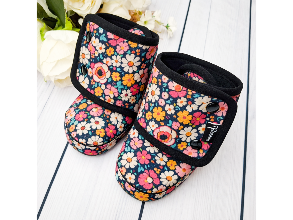Propracovaný střih zajistí Vašemu miminku pohodlí a teploučko. Capáčky šijeme dostatečně široké pro co největší pohodlí Vašeho zlatíčka, zároveň je okolo kotníčku gumička, aby se botička nevyzula. Capáčky mají praktické zapínání na 2 patentky. Celý capáček je podšitý měkoučkým fleesem, který zajistí dostatečnou tepelnou pohodu Vašemu miminku. Podrážka je z protiskluzného materiálu, takže krůčky Vašeho kulíška budou bezpečnější.