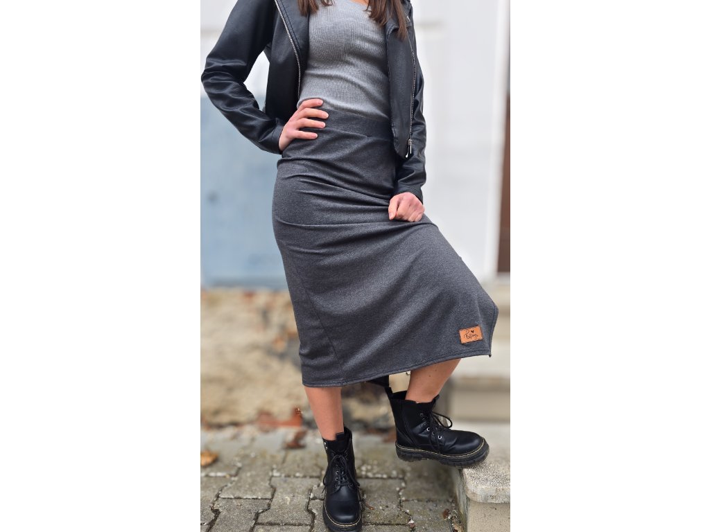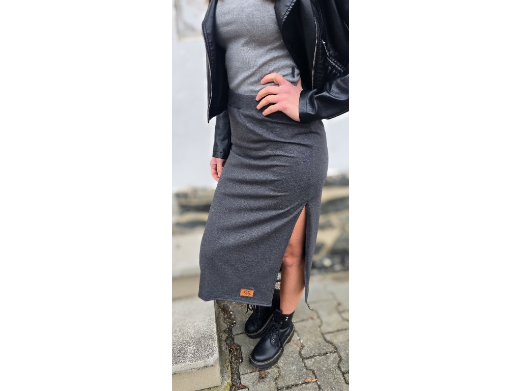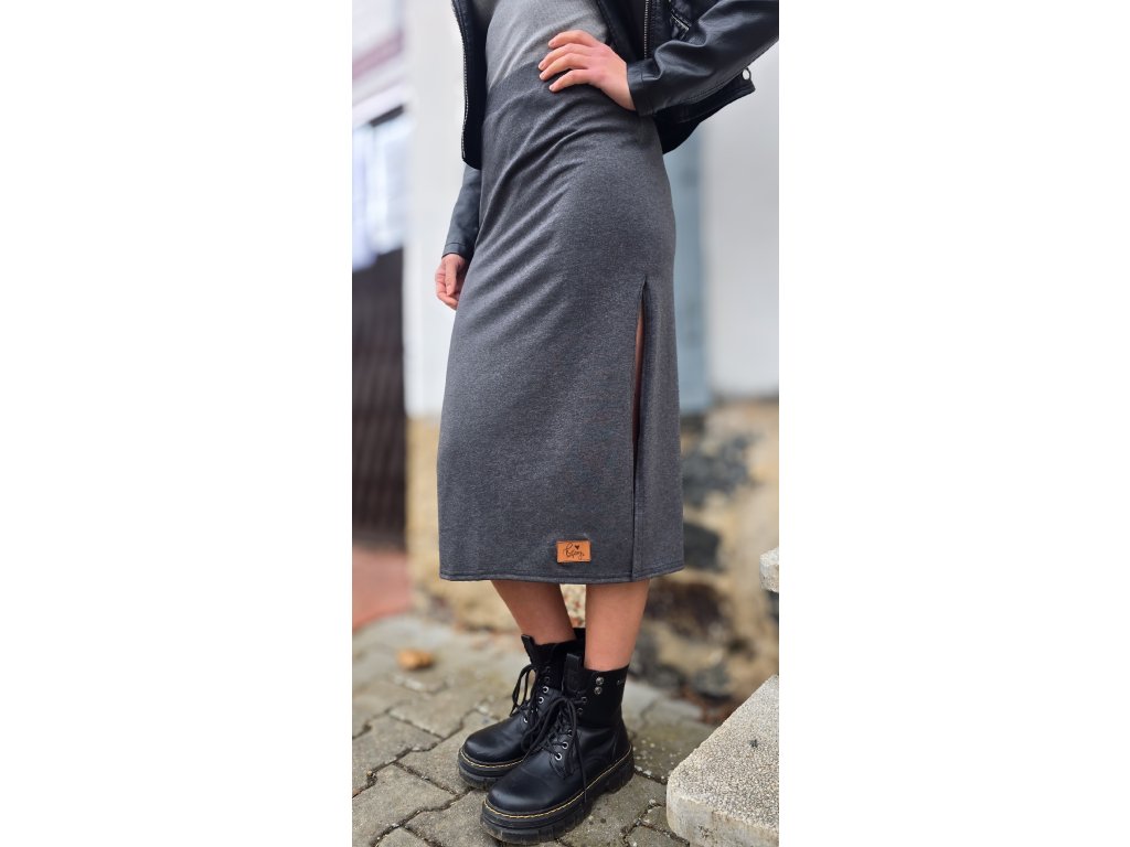 Velmi slušivá a pohodlná sukně ušitá z příjemného úpletu s rozparkem na jedné straně, který dodává modelu ženskost a zároveň zajišťuje pohodlí při nošení.