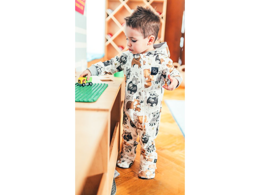 Overaly patří do dětského šatníku, protože jsou nejenom slušivé, ale hlavně funkční. Jsou snem každé maminky, která si s nimi může být jistá, že její kulíšek má krytá záda při každé akci. Rukávy a nohavice jsou ukončeny elastickými náplety. Po celé délce overalu, od krku až po nožičky všíváme zip, díky kterému bude oblékaní nebo přebalování hračka. Overal využijete i v nosítku či šátku, jelikož nohavice nejsou ukončené tlapkami, miminko se tak může pohodlně podsadit. Doporučujeme k overalu zakoupit také naše CAPÁČKY pro nožičky v teple.