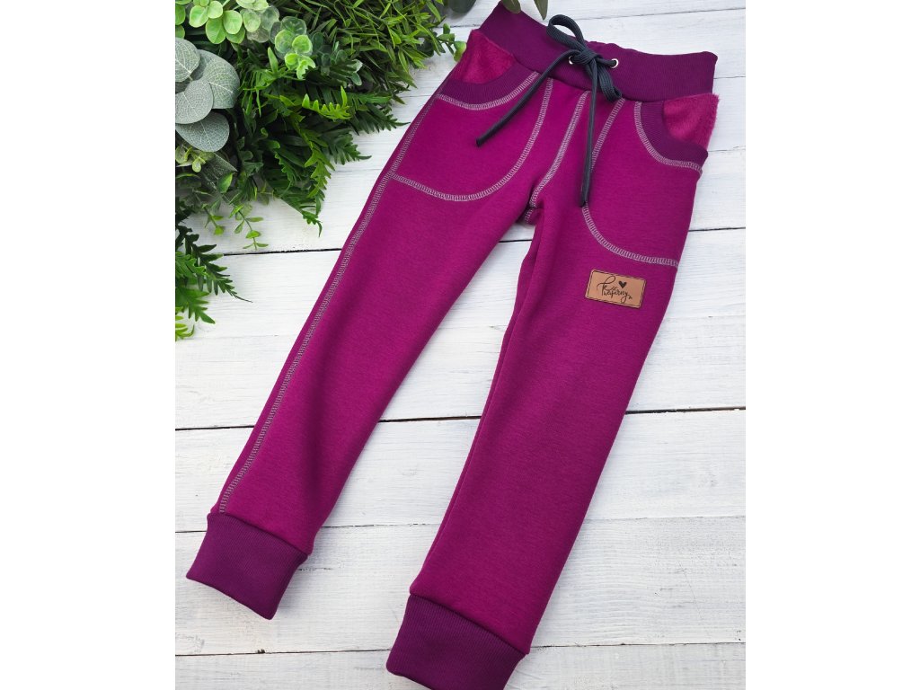 Zateplené tepláčky s kapsami fialové