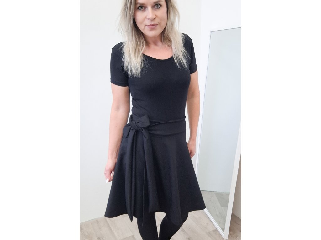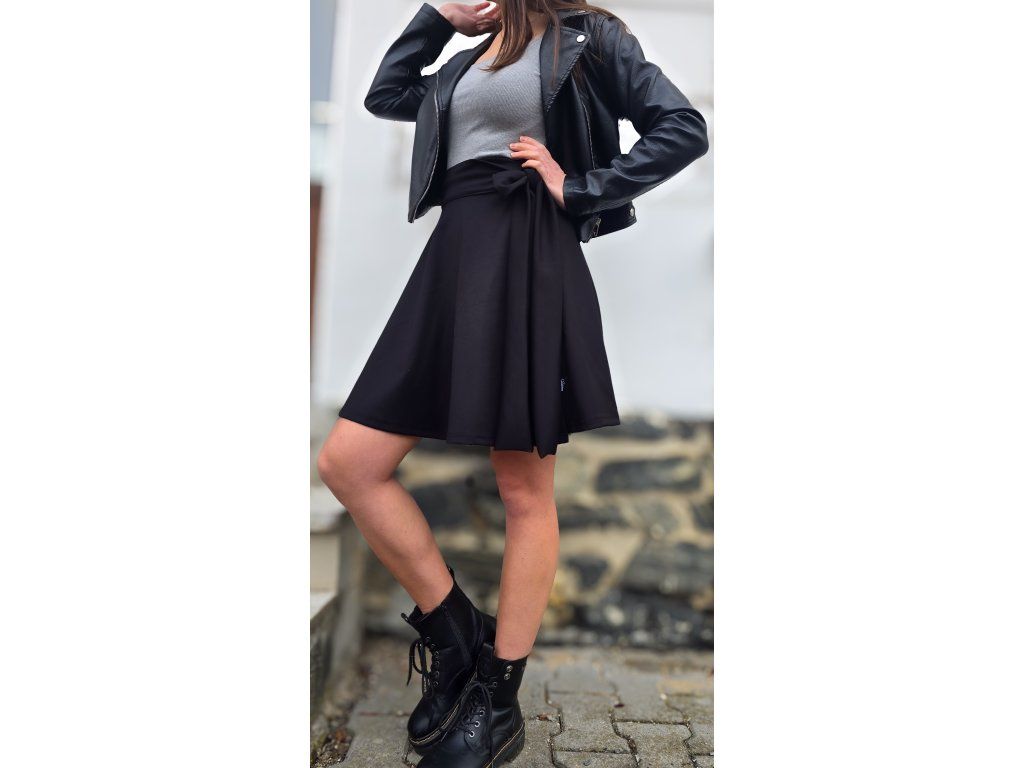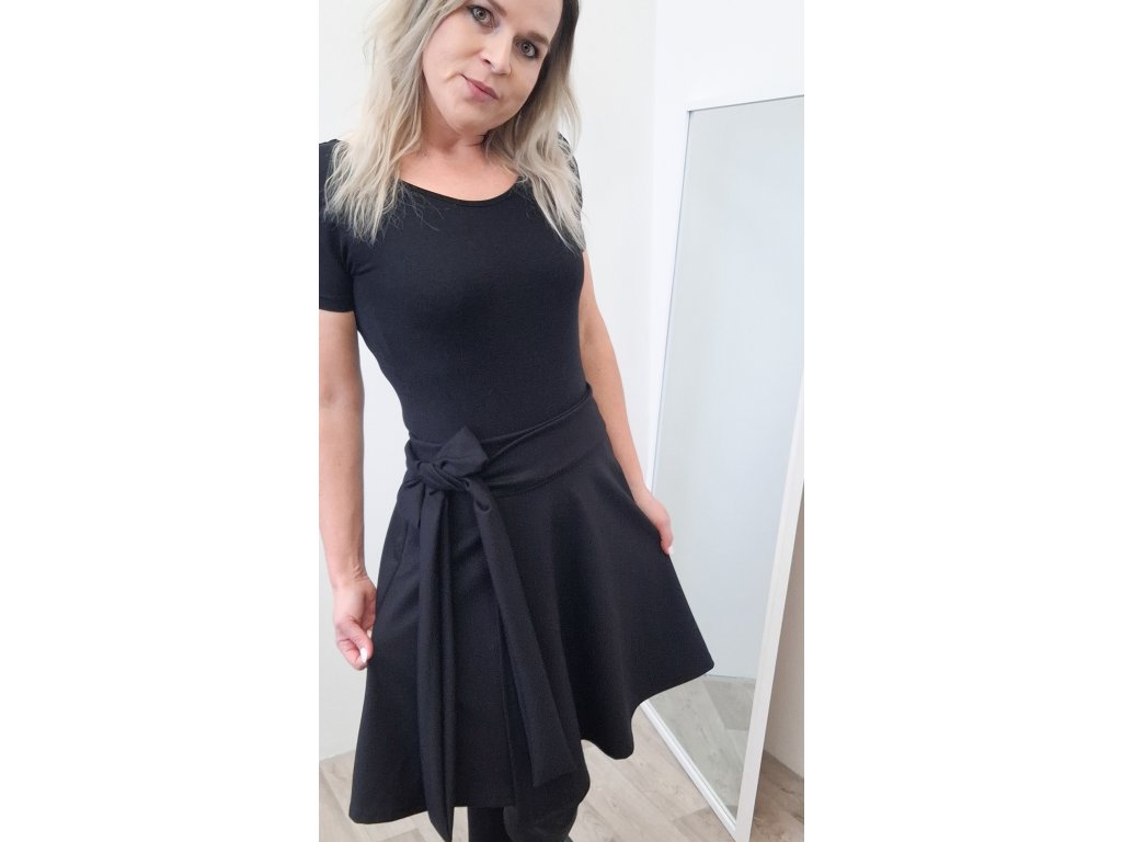 Slušivá délka po kolena lichotí postavě a je ideální jak pro každodenní nošení, tak i pro slavnostnější příležitosti. Sukni doplňuje vázací mašle, která dodává ženský a elegantní vzhled.