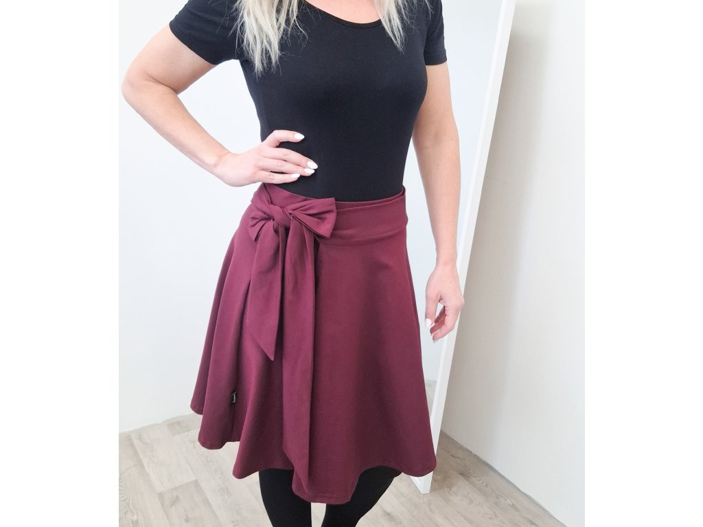 Slušivá délka po kolena lichotí postavě a je ideální jak pro každodenní nošení, tak i pro slavnostnější příležitosti. Sukni doplňuje vázací mašle, která dodává ženský a elegantní vzhled.